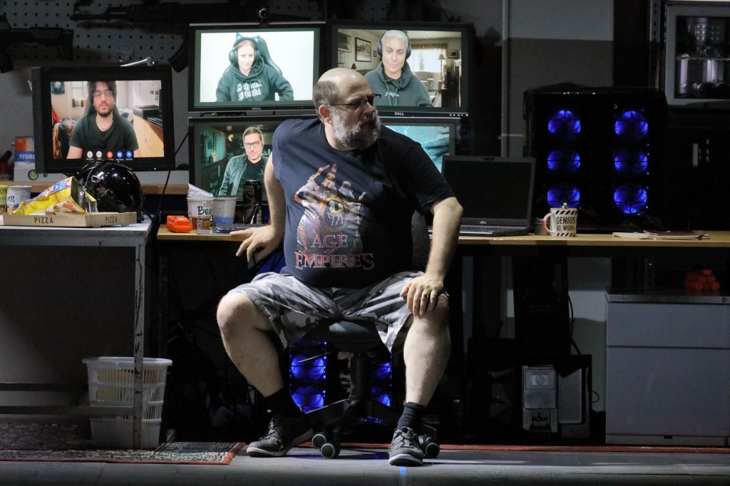Alberich and his brother Mime are holed up in a garage, rifles lining the walls and codes flashing on the computer as they plot their grand scheme for world domination. With the power of the gold, Alberich has whipped up a helmet that lets him morph into any form he pleases. He shows off by conjuring a massive worm that dispatches Mime’s poor, defenseless dog. But Loge, ever the trickster, cunningly convinces Alberich to turn into a little frog, then quickly scoops him up in a lunchbox for safekeeping.