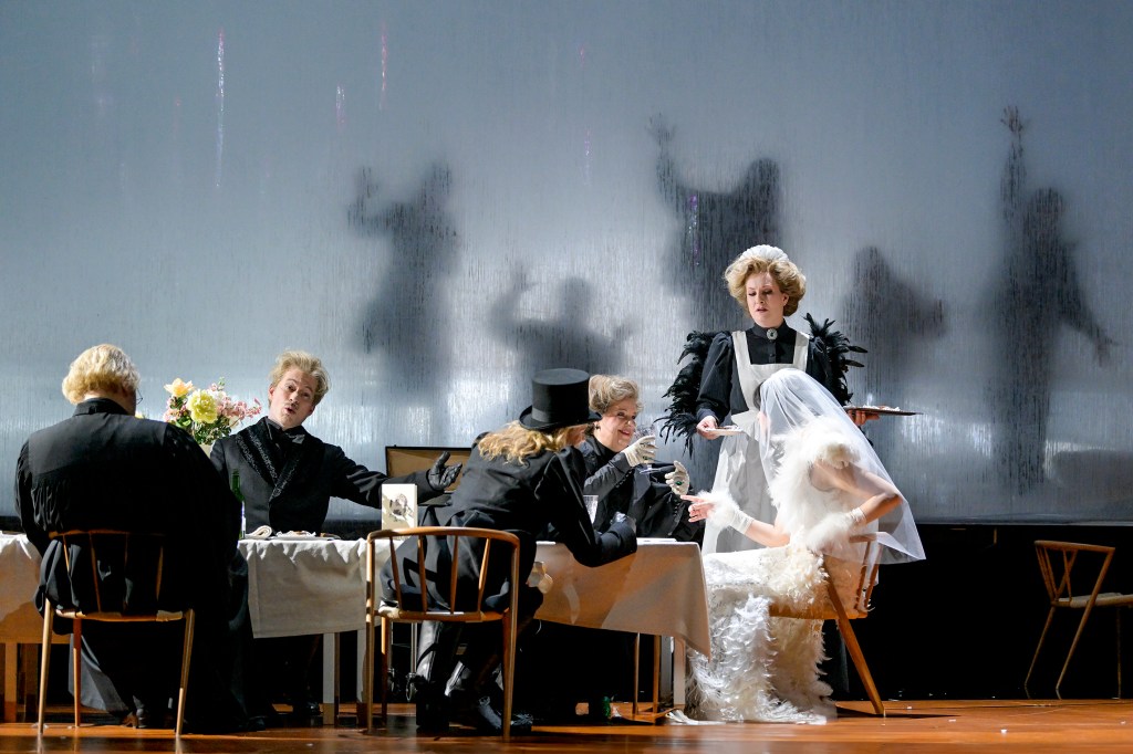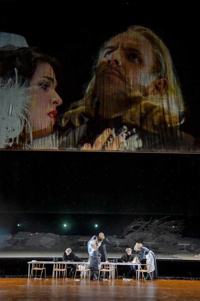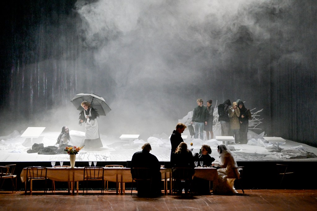The singers are swept up in a whirlwind of emotions (and vocal techniques). The groom’s father slips into falsetto a few times, and while Markus Butter captures the essence of the character, the role might feel slightly too deep for his voice. The mother, Anu Komsi (also Finnish), delivers notes that could easily be mistaken for screams. At times, a raw, unfiltered high note in forte fades into a soft piano, only for the orchestra to subtly take over, with the flutes occasionally echoing the vocal lines, amplifying the eerie, unsettling atmosphere.