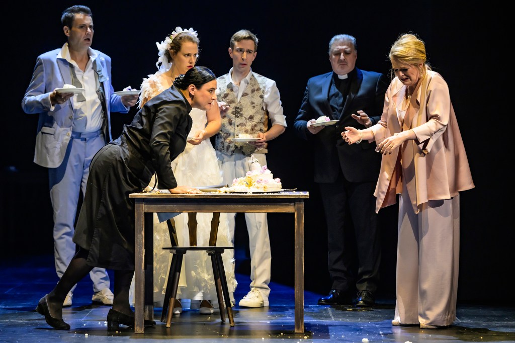Platz (Tuomas), Chloë Morgan (The Mother-in-Law (Patricia)). Photo: Bettina Stoess.
