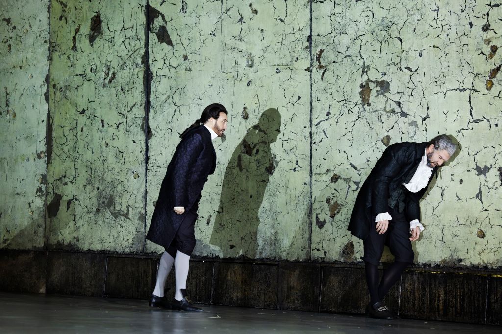 We’re stuck in the same room. Boxed in by the same walls. First, inside the de la Force family. Then we convert to the Carmelites. Grey walls with peeling paint. In Act II, blood runs down one of them – dark, thick, a spreading taint. You can hear the drops hit the floor. Drip… Drip. There’s no way out. No escape route. Fate has locked the door and swallowed the key. Goddammit…